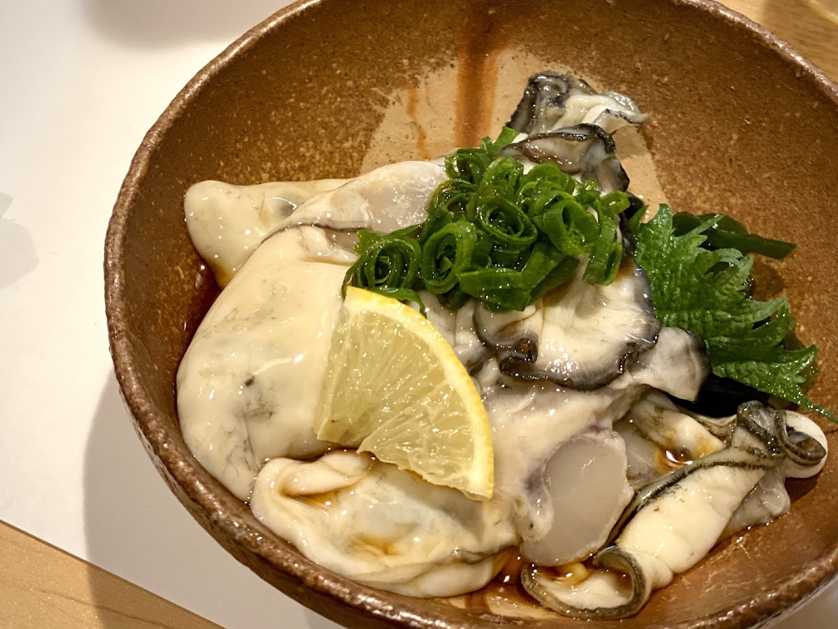 Another standout dish is the 生牡蠣ポン酢 (raw oysters with ponzu), a refreshing and tangy treat for oyster lovers. Served with a zesty ponzu sauce, this dish perfectly balances the briny richness of the oysters with the refreshing citrus notes of the sauce. It's the ideal starter to kick off your meal and whet your appetite for the next courses.